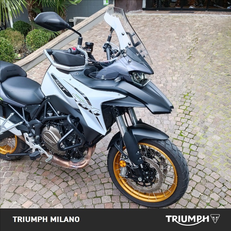 QJ MOTOR SRT 700 X, colore Bianco, Top di gamma delle adventure medie di casa Qj Motor. Moto con 7396km. Moto in ottime condizioni. Monta tris di borse originali QJ MOTOR in alluminio, barre paramotore originali, barre paramotore, cavalletto centrale, manopole e sella riscaldate. Storico manutentivo Qj. Pneumatici al 70%. Visionabile presso Triumph Milano in via Eugenio Brizi, 4. Per maggiori informazioni 02 9974 8923