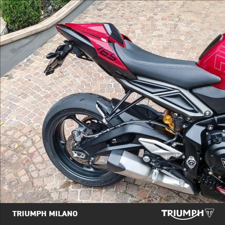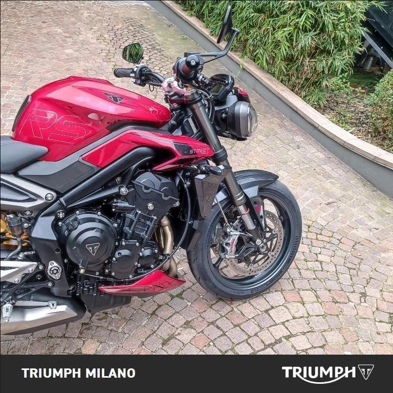 TRIUMPH STREET TRIPLE RS 765, colore Rosso, Top di gamma delle Roadster medie di casa Triumph. Moto con 24427km. Moto in condizioni ECCELLENTI. Completamente protetta da PPF. Monta cruise control, portatarga corto Evotech, protezione radiatore Evotech, cartucce forcella MISANO EVO Ohlins-Andreani e para serbatoio. Tagliando con gioco valvole appena effettuato, kit trasmissione nuovo. Storico sevice ufficiale. Gomme all'80%. Visionabile presso Triumph Milano in via Eugenio Brizi, 4. Per maggiori informazioni 02 9974 8923.